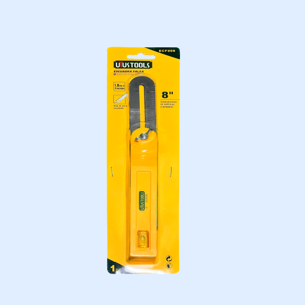 Presentamos la Falsa Escuadra con Nivel 1.0 mm de 8 pulgadas, un instrumento diseñado para garantizar precisión y eficiencia en tus trabajos de carpintería y construcción, su diseño ergonómico y robusto la convierten en un aliado indispensable en cualquier espacio de trabajo.
